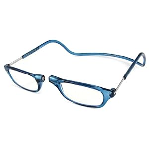 New 1.50 Clic Blue Readers Reading Glasses Click. CliC eyewear has a unique one piece design that lets them hang around your neck when not in use and, when you put them on, they just "CliCk" together.The patented magnet that holds them in place at the bridge of your nose keeps your CliCs in place during just about any activity. CliC readers can even be fitted with your own prescription! From the boardroom to the boat, from the warehouse to the slopes, get a pair of CliCs to wear in the sun. There's a pair of CliCs for every occasion.We carry magnifications from 1.25 to to 3.0. We carry colors of Blue, Red, Clear, Brown, Black, Classic Tortoise and Crystal Smoke. We also carry many other colors and styles of other models. See our other listings for other choices. CliC reading glasses just hang in style around your neck.These unique CliC reading glasses are perfect for all.