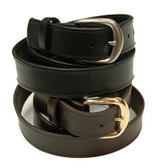 Top Grain Oil Tan Stitched Leather Belt - MADE IN USA 1 1/2 inch width Oil tan top grain leather Matching nylon stitching along the edges Brass finished harness buckle on brown belt Nickel finished harness buckle on black belt Removable buckle Style # 208